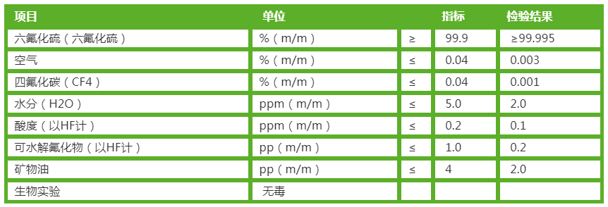 六氟化硫氣體產(chǎn)品標(biāo)準(zhǔn)及檢驗結(jié)果